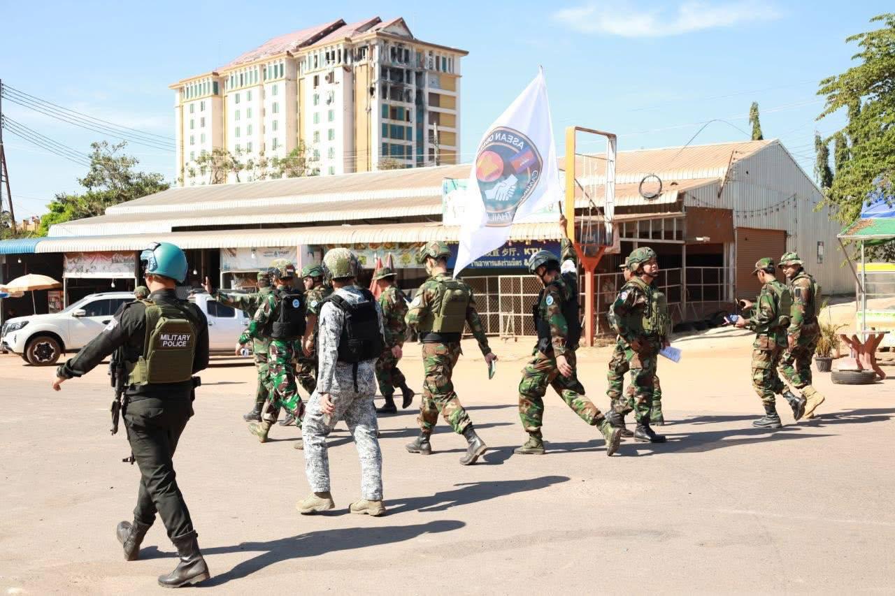 ឧត្តរមានជ័យ៖ លោក ម៉េត មាសភក្តី អភិបាលរងខេត្តឧត្តរមានជ័យ រួមជាមួយឧត្តមសេនីយ៍ទោ ជា សុភ័ក្រ មេបញ្ជាការរងយោធភូមិភាគទី៤ លោកអភិបាលស្រុកអន្លង់វែង និងក្រុមការងារបានចូលរួមជាមួយក្រុមអ្នកសង្កេតការណ៍អាស៊ាន (ASEAN Observers Team - AOT) ចុះពិនិត្យ និងវាយតម្លៃជាក់ស្តែងនៅទីតាំងច្រកទ្វារព្រំដែនអន្តរជាតិជាំ ស្ថិតក្នុងស្រុកអន្លង់វែង ខេត្តឧត្តរមានជ័យ។