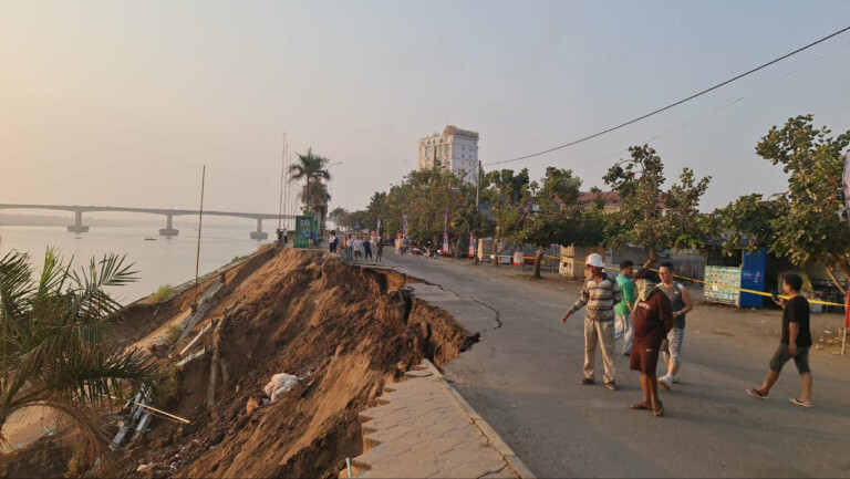 កំពង់ចាម៖ នៅវេលាម៉ោង ១២ រំលងអាធ្រាត្រ ឈានចូលថ្ងៃសៅរ៍ ទី៣១ ខែមករា ឆ្នាំ២០២៦, ច្រាំងទន្លេមេគង្គ ស្ថិតនៅសង្កាត់កំពង់ចាម ក្រុងកំពង់ចាម បានបន្តបាក់ស្រុតចូលទឹកទន្លេ បង្កឱ្យប្រជាពលរដ្ឋ និងអ្នកលក់ដូរ តាមមាត់ទន្លេមានភាពភ្ញាក់ផ្អើល និងកើតការព្រួយបារម្ភយ៉ាងខ្លាំង។