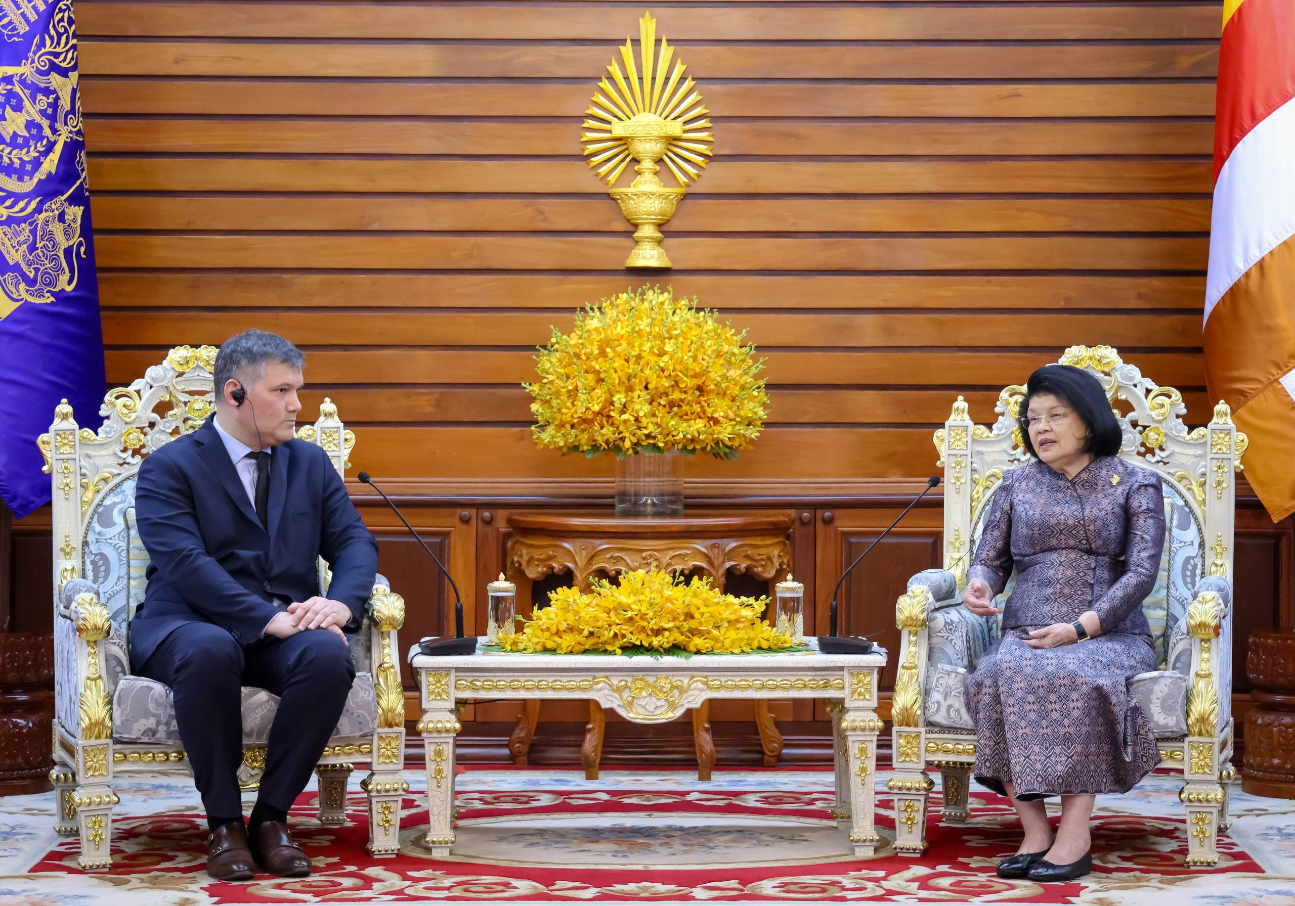 ក្នុងឱកាសនោះ សម្តេចប្រធានរដ្ឋសភា បានសម្តែងនូវក្តីសោមនស្សរីករាយ និងអបអរសាទរចំពោះការតែងតាំងឯកអគ្គរាជទូតទាំងបួនរូប ដែលទទួលបានសេចក្តីទុកចិត្តពីរាជរដ្ឋាភិបាលអាណត្តិទី៧ ក្រោមការដឹកនាំរបស់ ហ៊ុន ម៉ាណែត នាយករដ្ឋមន្រ្តីកម្ពុជា។