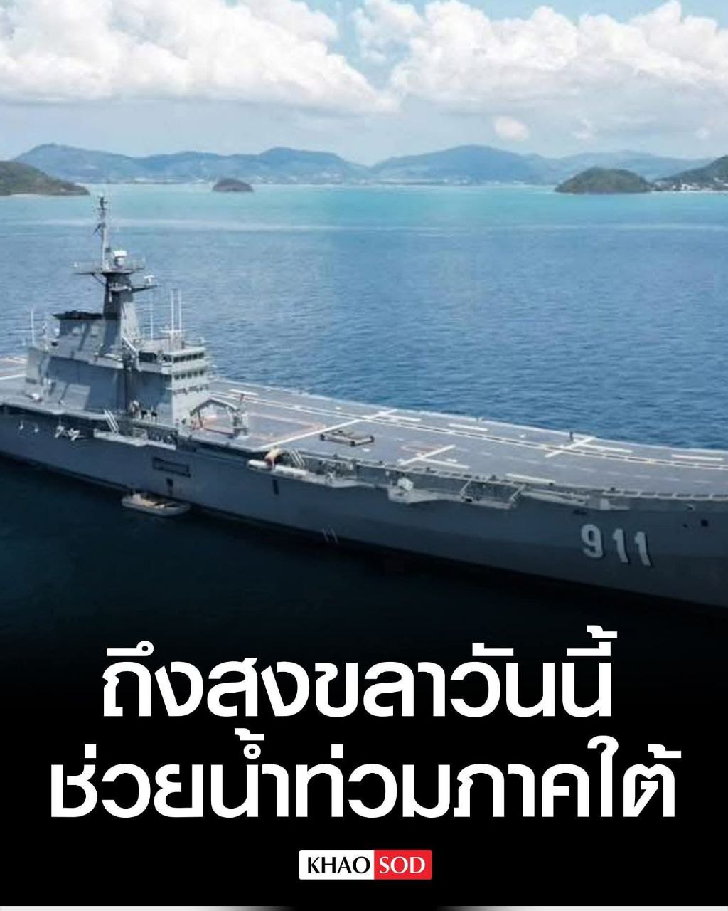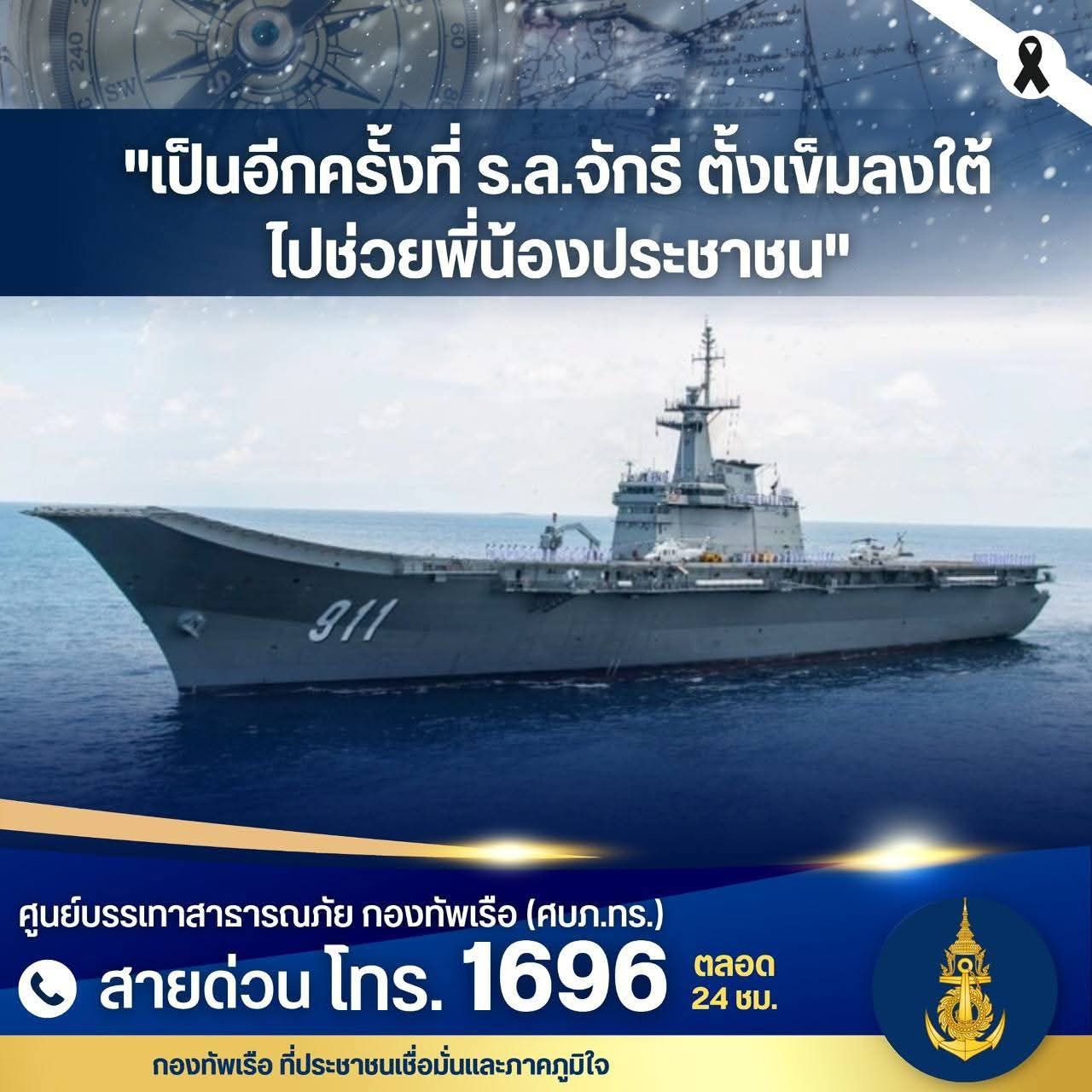 ការបញ្ចេញនាវាចម្បាំងរបស់ថៃ HTMS Chakri Naruebet នឹងចេញដំណើរពីមូលដ្ឋានទ័ពជើងទឹក Sathip នៅថ្ងៃនេះ រួមជាមួយនឹងឧទ្ធម្ភាគចក្រ២គ្រឿងបន្ថែមទៀត ព្រមទាំងបុគ្គលិក ក្រុមគ្រូពេទ្យ សម្ភារៈសង្គ្រោះ អាហារ និងទឹក ដើម្បីជួយជនរងគ្រោះដែលកំពុងជាប់គាំង និងគ្មានអាហារបរិភោគព្រោះតែមហន្តរាយទឹកជំនន់។