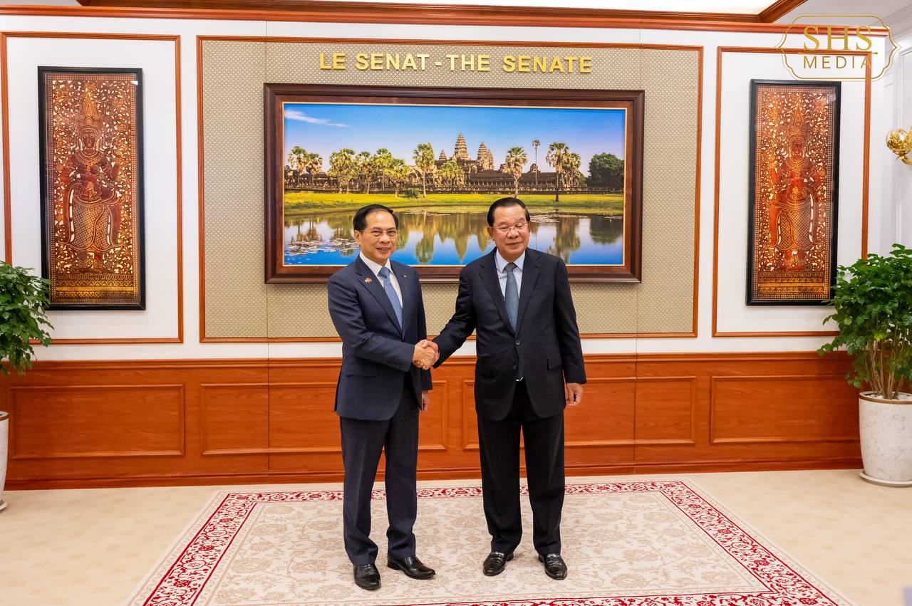 នៅវិមានព្រឹទ្ធសភា នាព្រឹកថ្ងៃសុក្រ ៨កើត ខែមិគសិរ ឆ្នាំម្សាញ់ សប្តស័ក ពុទ្ធសករាជ ២៥៦៩ ត្រូវនឹងថ្ងៃទី២៨ ខែវិច្ឆិកា ឆ្នាំ២០២៥ សម្តេចអគ្គមហាសេនាបតីតេជោ ហ៊ុន សែន ប្រធានព្រឹទ្ធសភានៃព្រះរាជាណាចក្រកម្ពុជា អនុញ្ញាតឱ្យ ឯកឧត្តម Bui Thanh Son ឧបនាយករដ្ឋមន្ត្រី នៃសាធារណរដ្ឋសង្គមនិយមវៀតណាម ចូលជួបសម្តែងការគួរសម និងពិភាក្សាការងារ។