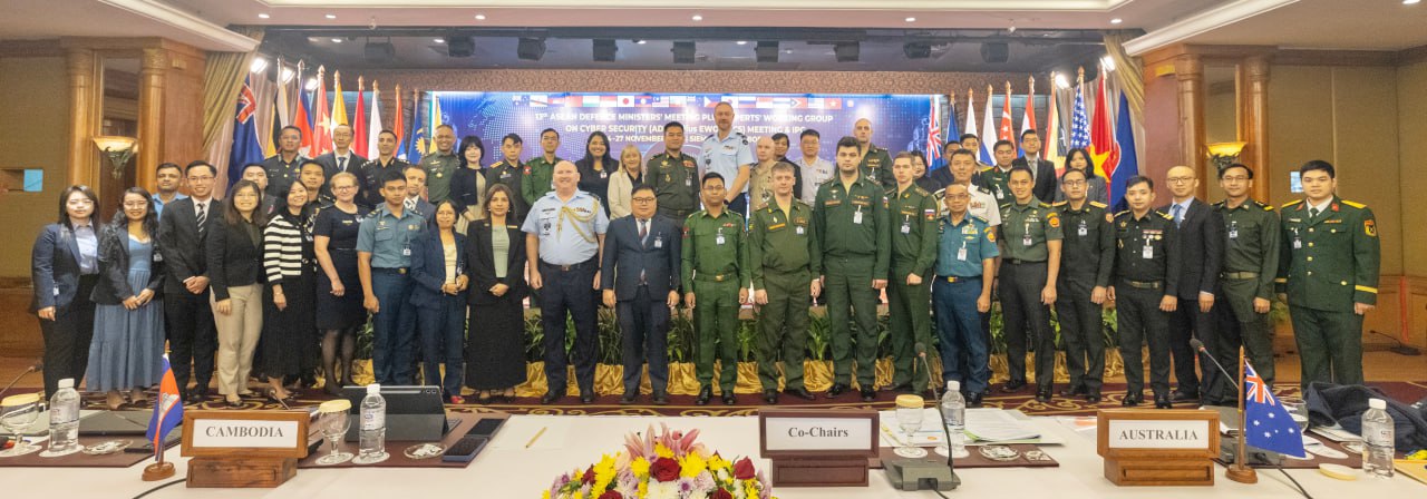សៀមរាប៖ នាយកដ្ឋានបញ្ជូនសារ ក្រសួងការពារជាតិ តំណាងឱ្យក្រសួងការពារជាតិកម្ពុជា និងជាសហប្រធានក្រុមការងារជំនាញ ស្ដីពី សន្តិសុខសាយប័រជាមួយសហប្រធានអូស្ត្រាលី សម្រាប់ជុំទី៣ ចាប់ពីឆ្នាំ២០២៤ ដល់ឆ្នាំ២០២៧ បានរៀបចំធ្វើម្ចាស់ផ្ទះកិច្ចប្រជុំក្រុមការងារជំនាញស្ដីពី សន្ដិសុខសាយប័រ លើកទី១៣ ក្នុងក្របខ័ណ្ឌកិច្ចប្រជុំរដ្ឋមន្រ្តីការពារជាតិអាស៊ាន-បូក ដែលបានប្រព្រឹត្តទៅចាប់ពីថ្ងៃទី២៤ ដល់ថ្ងៃទី២៧ ខែវិច្ឆិកា ឆ្នាំ២០២៥ នៅសណ្ឋាគារអង្គរសេនជូរី រីសត & ស្ប៉ា ក្នុងខេត្តសៀមរាប។