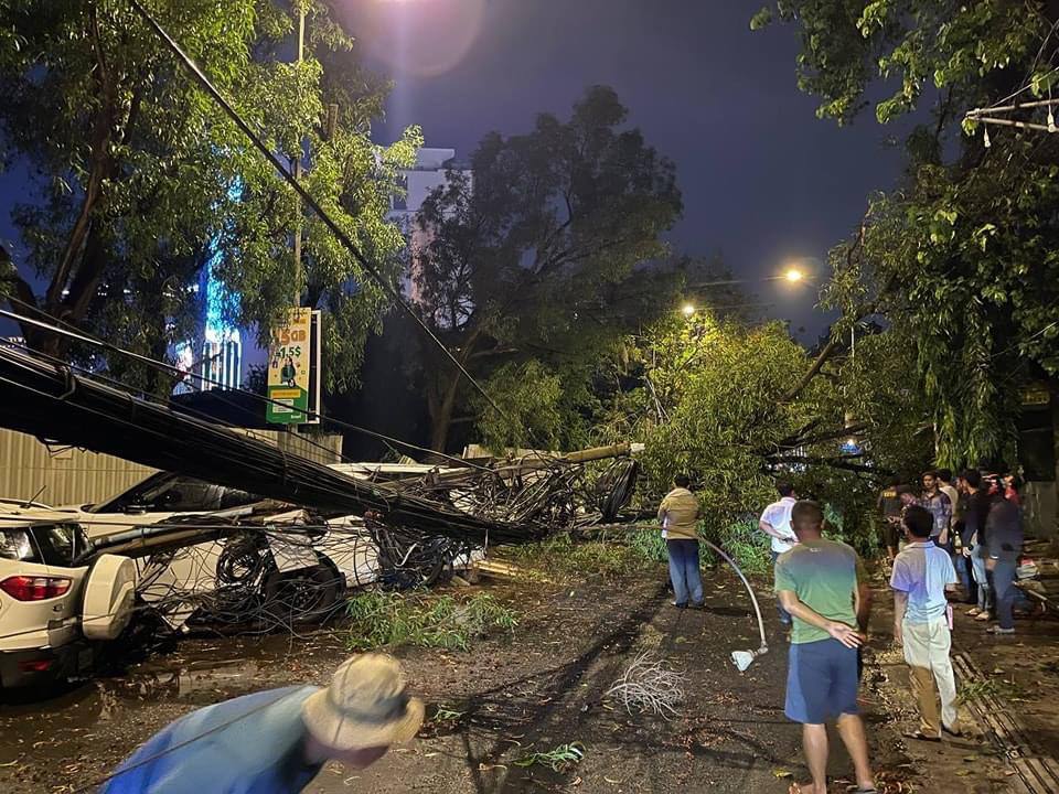ភ្លៀងមួយមេធំលាយឡំនឹងខ្យល់កន្ត្រាក់បណ្ដាល ឲ្យបាក់ដើមឈើមួយដើមសង្កត់លើខ្សែភ្លើងបាក់ចំលើឡាន