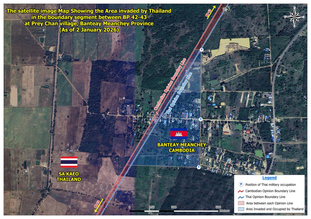 ការឈរជើង និងការគ្រប់គ្រងតំបន់ដែលមានសម្បទានៅភូមិព្រៃចាន់ ជោគជ័យ និងបឹងត្រកូន ខេត្តបន្ទាយមានជ័យ និងតំបន់ច្រកទ្វារ អន្តរជាតិថ្មដា ខេត្តពោធិ៍សាត់ គឺបង្ហាញពីការរំលោភគោលការណ៍អធិបតេយ្យ និងសិទ្ធិស៊ីវិលដែលត្រូវបានសម្រេចក្នុងសេចក្តីប្រកាសរួម និងកិច្ចព្រមព្រៀងឈប់បាញ់រវាងកម្ពុជា និងថៃ។
