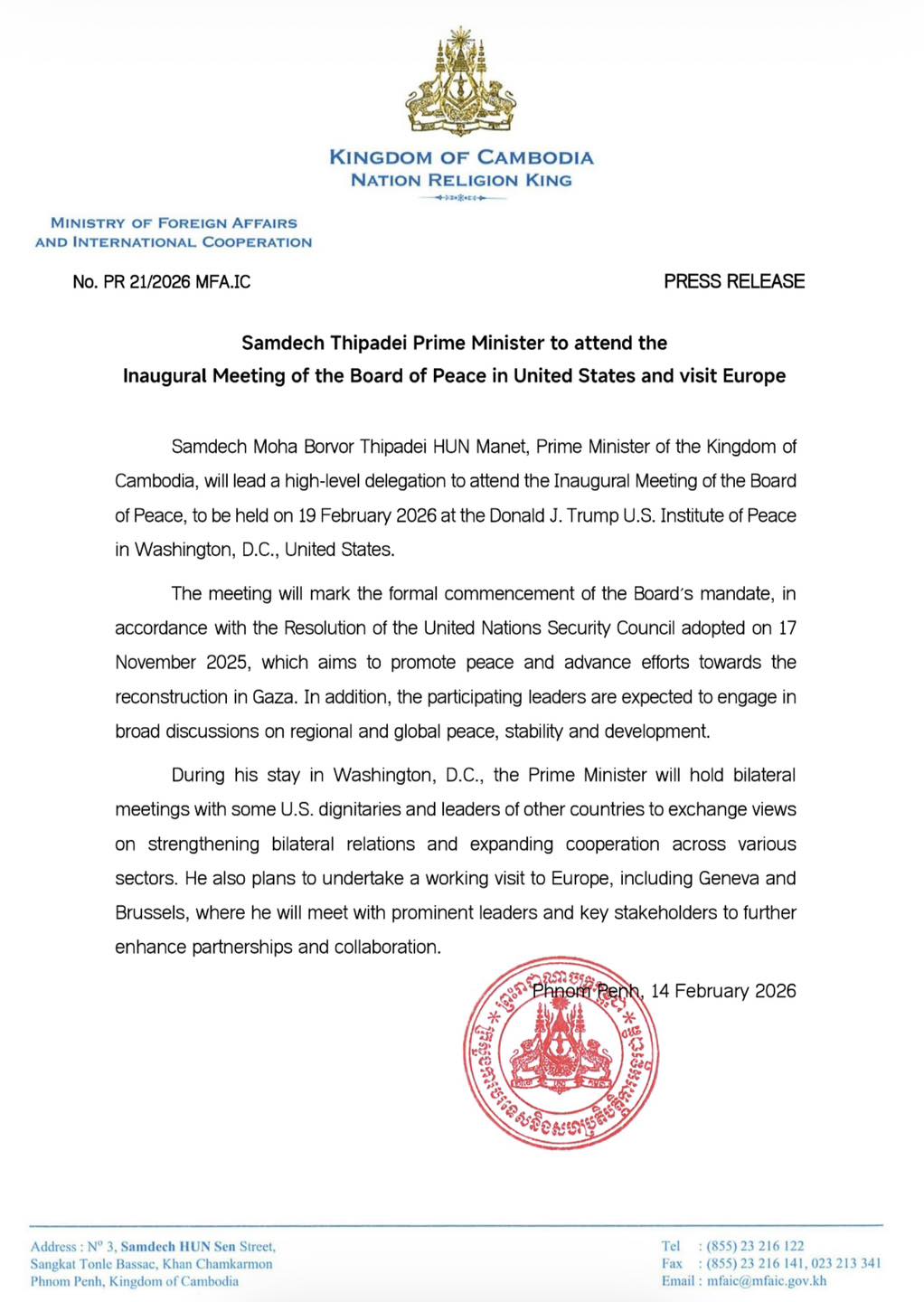សម្តេចធិបតីនាយករដ្ឋមន្ត្រី ក៏មានគម្រោងធ្វើទស្សនកិច្ចការងារទៅកាន់ទ្វីបអឺរ៉ុប រួមទាំងទីក្រុងហ្សឺណែវ និងទីក្រុងព្រុចសែល ដោយ នឹងមានជំនួបជាមួយថ្នាក់ដឹកនាំ និងអ្នកពាក់ព័ន្ធសំខាន់ៗ ដើម្បីបង្កើនភាពជាដៃគូ និងកិច្ចសហការ បន្ថែមទៀត៕