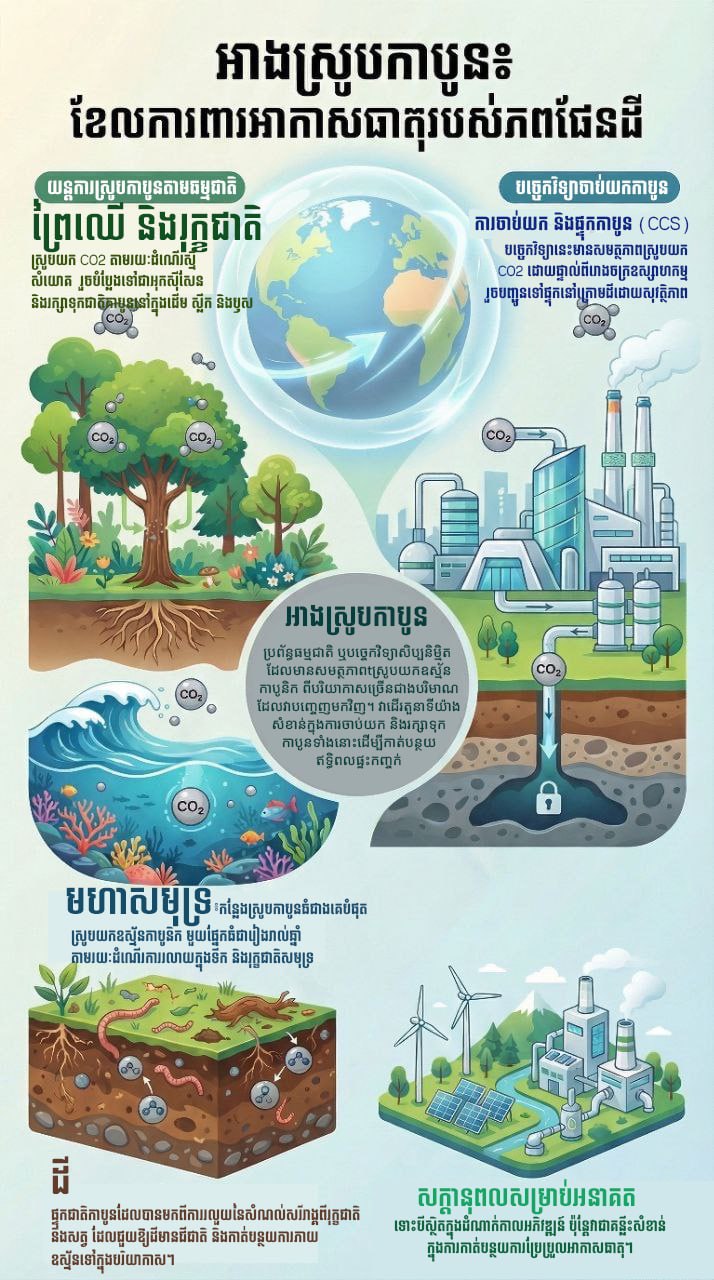 សរុបមក ការស្រូបទុកកាបូនគឺជាឧបករណ៍សំខាន់មួយក្នុងការប្រយុទ្ធប្រឆាំងនឹងការប្រែប្រួលអាកាសធាតុ។ តាមរយៈការរួមបញ្ចូលគ្នារវាងកិច្ចការពារធម្មជាតិ និងការប្រើប្រាស់បច្ចេកវិទ្យាទំនើប យើងអាចកាត់បន្ថយដានកាបូន និងឈានទៅរកអនាគតមួយដែលប្រកបដោយចីរភាពពិតប្រាកដ៕